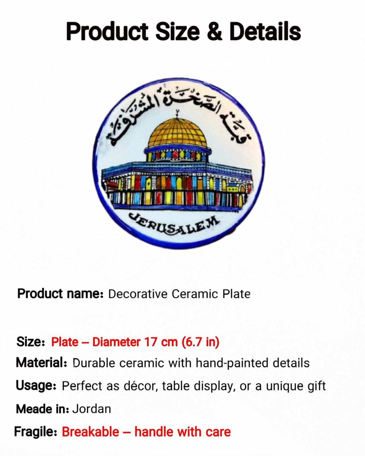 أضف لمسة من الرقي والأناقة إلى منزلك مع أطباقنا الخزفية المصنوعة يدويًا والمزينة بزخارف شرقية بسيطة وتتميز بصورة المسجد الأقصى.