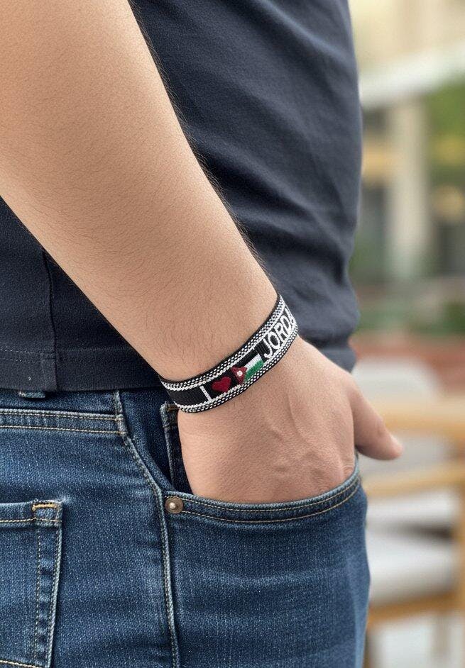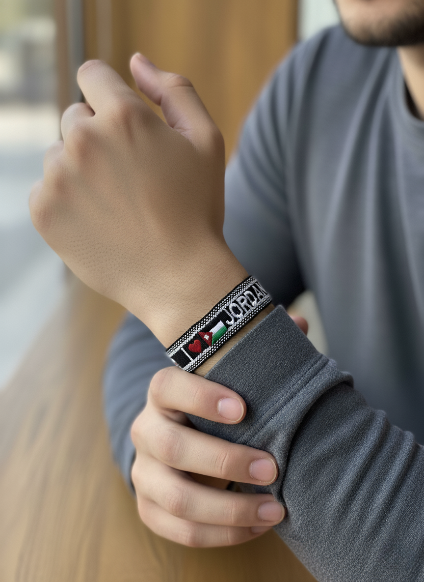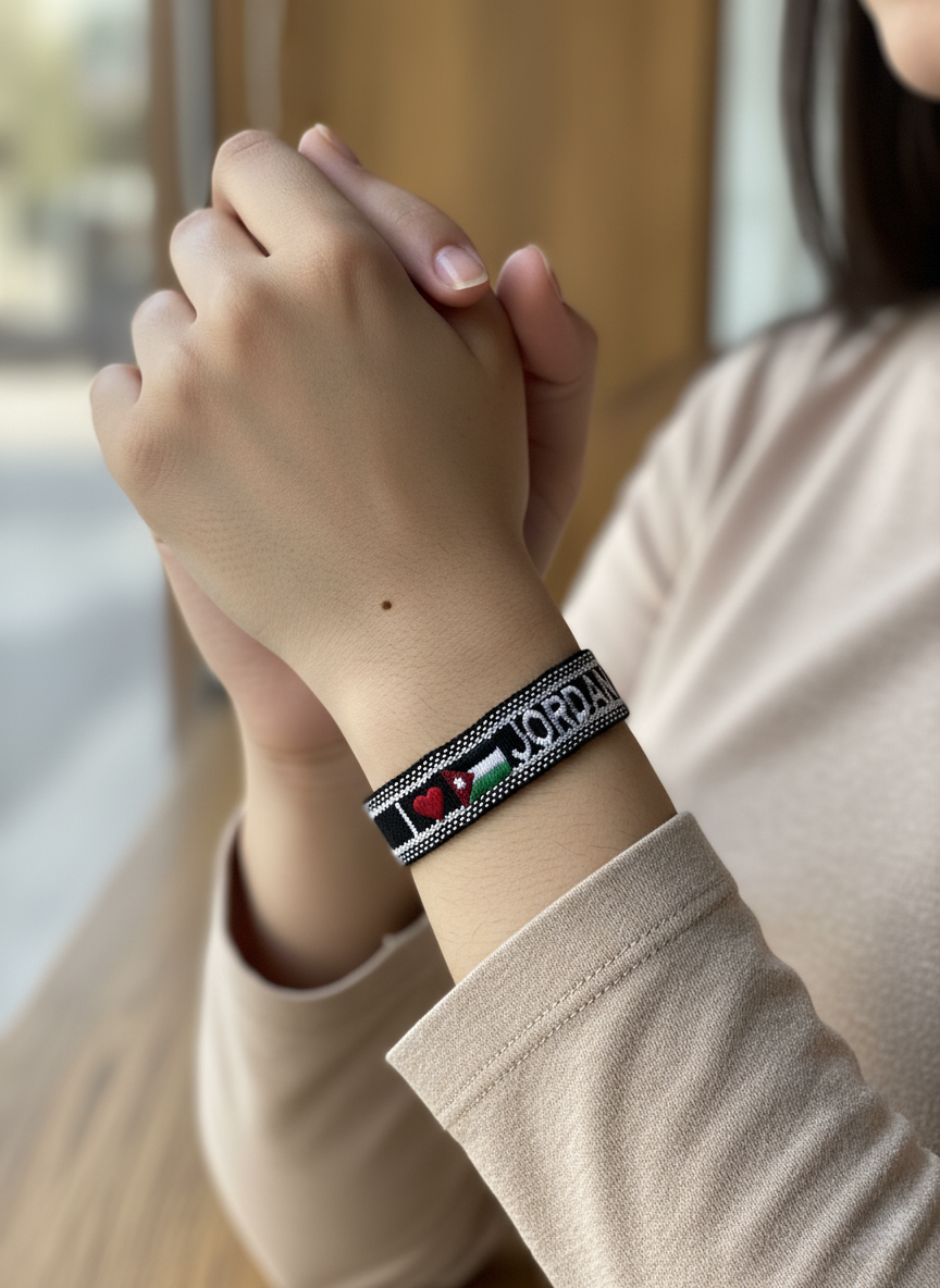يتميز كل سوار بشعار علم الأردن، وهو مصنوع من مادة منسوجة متينة ومريحة للارتداء كل يوم.