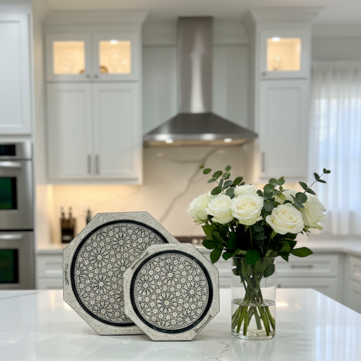 يتم تصنيع كل صينية باستخدام قطع من الخشب الطبيعي بألوان مختلفة، مما يخلق أنماط شرقية خالدة تعكس قرونًا من التراث.